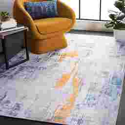 The Phirzal rug is crafted from high-quality synthetic fibers known for their colorfastness. These materials are generally more resistant to fading than natural fibers, making this rug a reliable choice for sun-drenched rooms or coastal homes in climates like Florida or Texas. The abstract pattern in gray, blue, and gold is designed to maintain its vibrancy and visual depth over years of use.