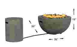 The irresistible allure of nature's elements comes home to light up the night with the Phoenix fire pit. This backyard essential in gray features a timeless bowl design made of concrete reinforced with glass fibers for exceptional outdoor durability. The entrancing flames brighten any late-night conversation with 50,000 BTUs of dial-adjustable intensity. Large lava rocks add to the natural appeal, and the included tank cover doubles as a matching end table while keeping fuel covered, elevated and neatly out of the way.