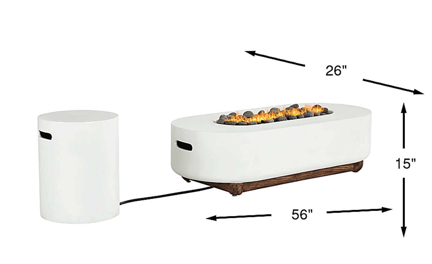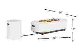 The irresistible allure of nature's elements comes home to light up the night with the Phoenix fire pit. This backyard essential in white features a timeless oval design made of concrete reinforced with glass fibers for exceptional outdoor durability. The entrancing flames brighten any late-night conversation with 50,000 BTUs of dial-adjustable intensity. Large lava rocks add to the natural appeal, and the included tank cover doubles as a matching end table while keeping fuel covered, elevated and neatly out of the way.