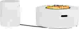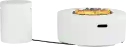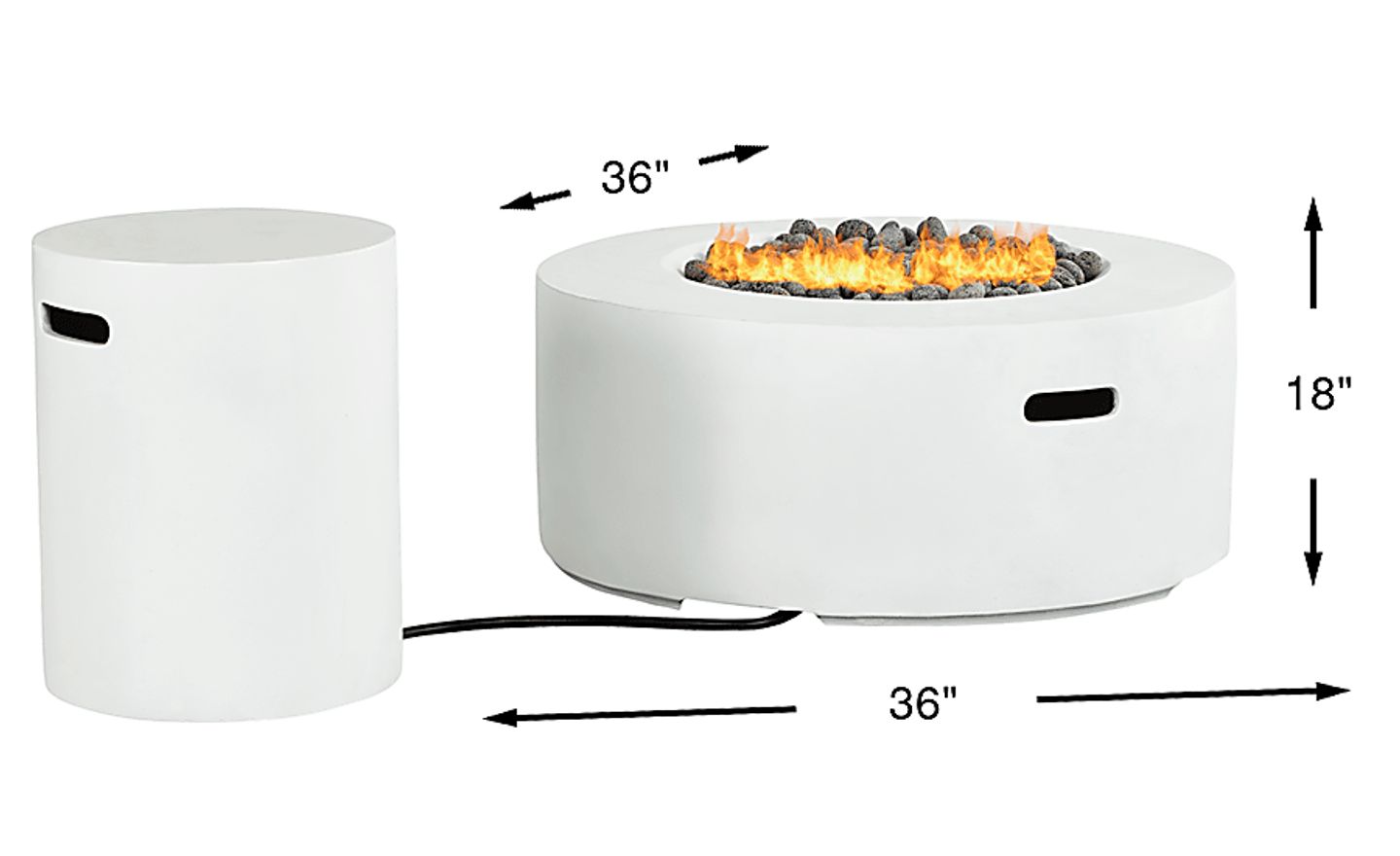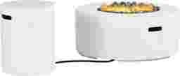 The irresistible allure of nature's elements comes home to light up the night with the Phoenix fire pit. This backyard essential in white features a timeless round design made of concrete reinforced with glass fibers for exceptional outdoor durability. The entrancing flames brighten any late-night conversation with 50,000 BTUs of dial-adjustable intensity. Large lava rocks add to the natural appeal, and the included tank cover doubles as a matching end table while keeping fuel covered, elevated and neatly out of the way.