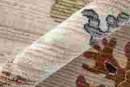 How does a distressed, multi-color rug complement a contemporary home?