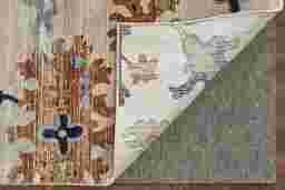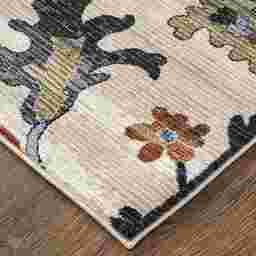This contemporary rug features a curated palette of navy, rust, and sage against a light neutral background, making it an excellent "bridge" piece for rooms with varied wood finishes or upholstery. If your furniture is neutral, the intricate medallion and vine motifs add a sophisticated pop of color. For rooms that already feature bold tones, the distressed, watercolor-like finish helps soften the transition, allowing the rug to ground the space without overwhelming other décor elements.