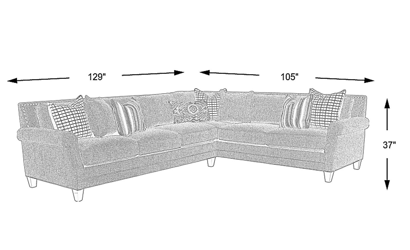 Lending a stunning tailored look with fantastic eye appeal to your home, the Piedmont sectional's casual transitional style makes it ideal for any type of decor. Crisply sophisticated lines are emphasized with elegant rolled arms, and a lovely nailhead trim along the back. Upholstered in a cozy woven gray fabric, loose seat cushions are complemented with an assortment of included accent pillows. 100% polyester