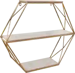 This shelf features a gold-finished metal frame, which offers superior structural rigidity and a "lighter" visual footprint than solid wood. Metal frames are particularly advantageous in various climates because they do not warp, shrink, or swell with changes in humidity. This ensures the geometric hexagon shape remains perfectly symmetrical and the tiers remain level throughout the life of the product.