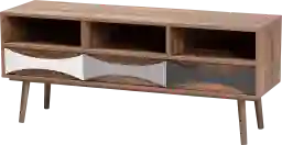 Update the character of your home with the contemporary design of the Pittari 47 in. TV console. This stunning piece is constructed from sturdy wood. Three shelves create a convenient display for all your living room essentials, while three drawers offer more secure storage space. The Pittari features concave drawer handles that add geometric texture. Angled legs lend a classic feel, making the Pitarri TV console a remarkable addition to any space. Customer assembly required.