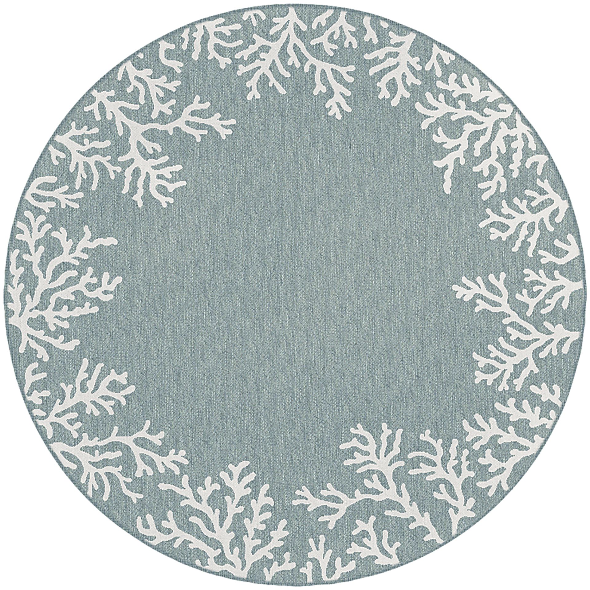Complete your indoor or outdoor space with the Placida round rug. Made in Turkey, this piece is crafted with durable polypropylene. Its aqua color and stylish, white coral design complement a wide variety of furniture styles. 100% Polypropylene