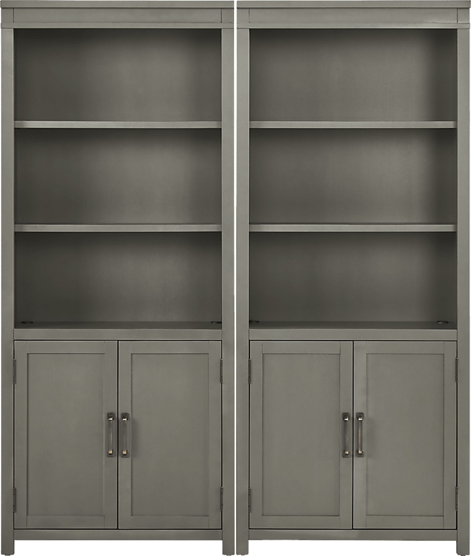 Whether you're nine to fiving from home or just looking to spruce up your work zone, the regal lines and rich definition of the Planefield collection deliver a stunning look for your office set up. Each bookcase features an ultra-smooth feel and overall sleek look, complimented by the subtle gray finish. Shelving allows you to organize supplies, display decor and more. Hidden behind the doors on each piece, you can store even more with adjustable shelving. Oversized metal pulls in a brass color finish deliver the perfect final polish.