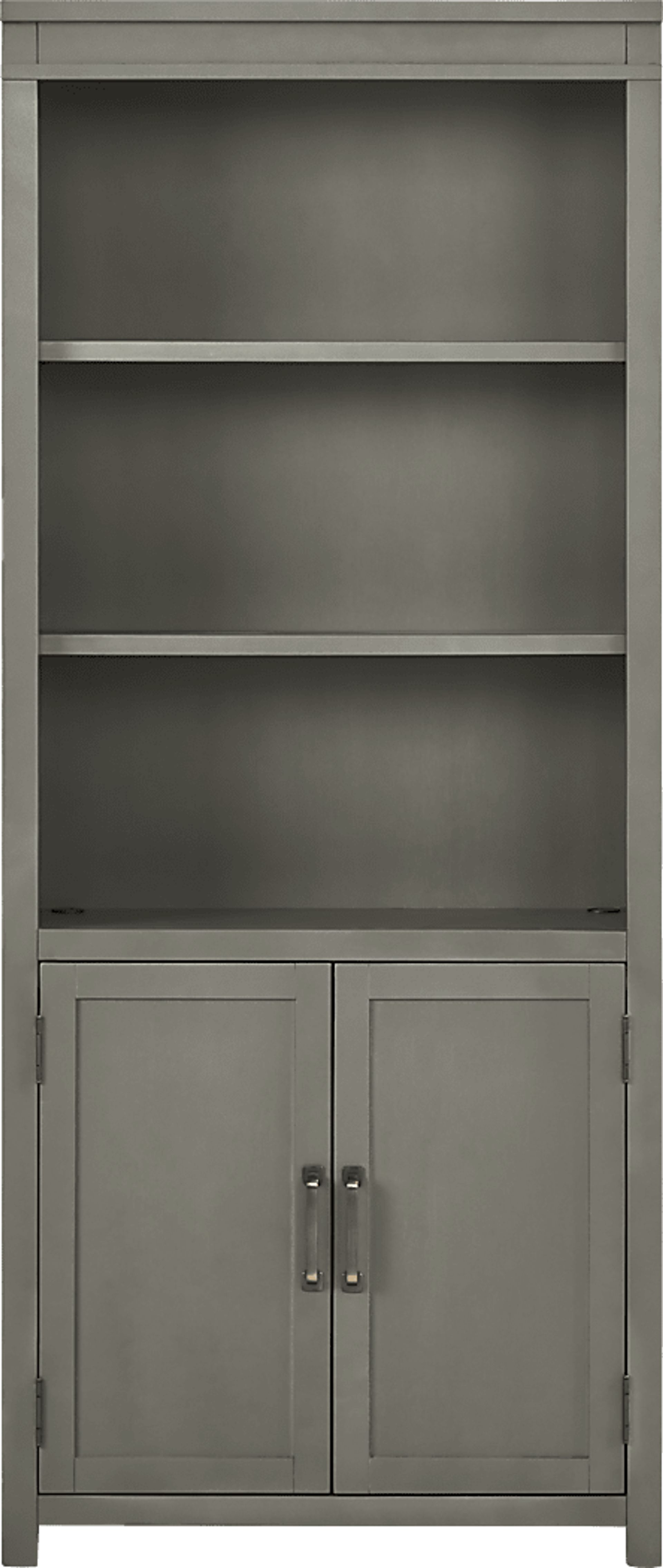 Whether you're nine to fiving from home or just looking to spruce up your work zone, the regal lines and rich definition of the Planefield collection deliver a stunning look for your office set up. This bookcase features an ultra-smooth feel and overall sleek look, complimented by the subtle gray finish. Shelving allows you to organize supplies, display decor and more. Hidden behind the pair of doors, you can store even more with adjustable shelving. Oversized metal pulls in a brass color finish deliver the perfect final polish.