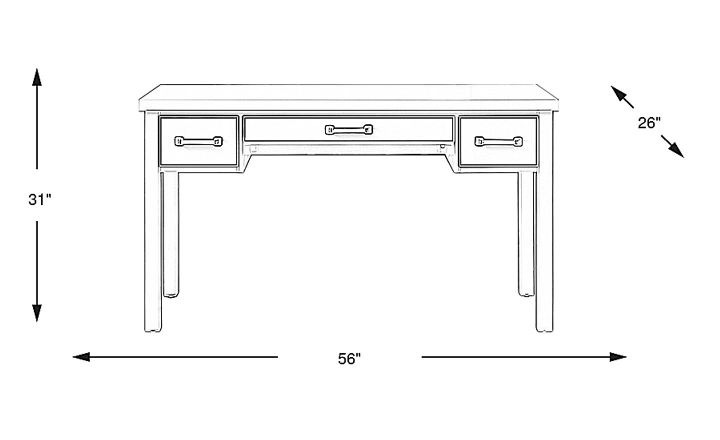 Yes, this desk is an excellent choice for urban living or smaller floor plans. While it provides a generous 56-inch wide writing surface, its straight-leg design and crisp white finish create an "airy" visual profile that prevents the room from feeling cramped. The 26-inch depth is also optimized to provide ample workspace for a laptop and monitors without protruding too far into your living area.