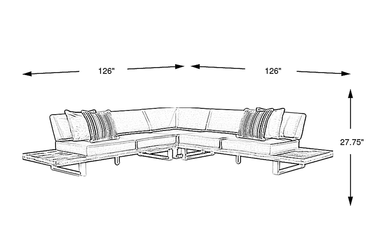 Bring the comfort of indoor furniture outside with the Platform sectional. This impressive sectional is made with contemporary style and durability in mind. This sleek, low profile sectional is crafted with solid natural teak and a powder coated aluminum frame. The ultra-durable performance cushions, in a pewter color, are fade, mold and mildew resistant for long lasting outdoor use. Seating for up to five people is comfortable too, thanks to the breathable nature of the fabric. Four toss pillows add just the right touch. Select cushion colors also available in Sunbrella fabric.