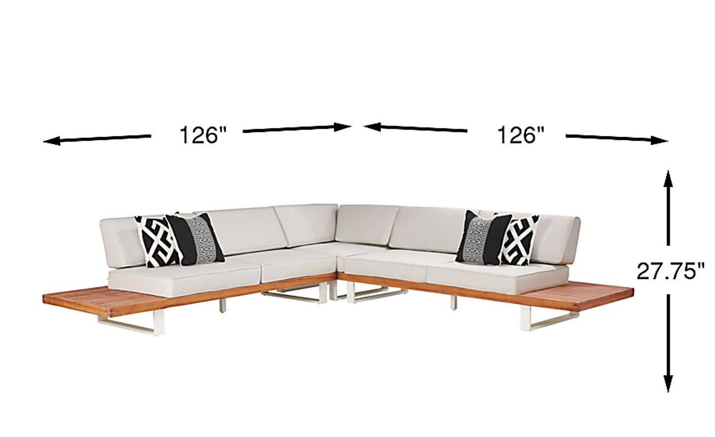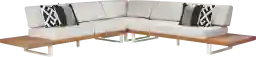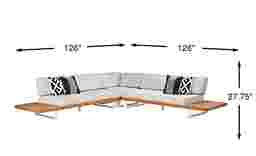 Bring the comfort of indoor furniture outside with the Platform sectional. This impressive sectional is made with contemporary style and durability in mind. This sleek, low profile sectional is crafted with solid natural teak and a powder coated aluminum frame. The ultra-durable outdoor fabric cushions, in a sand color, are fade, mold and mildew resistant for long lasting outdoor use. Seating for up to five people is comfortable too, thanks to the breathable nature of the fabric. Four toss pillows add just the right touch. Select cushion colors also available in Sunbrella fabric.