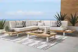 This sectional is engineered for superior longevity by combining two of the most resilient outdoor materials: solid natural teak and a powder-coated aluminum frame. Solid teak is highly valued in high-end furniture construction for its inherent oils that provide exceptional natural resistance to moisture and decay. Supporting this is a sleek, low-profile aluminum frame that has been powder-coated to provide an extra layer of protection against rust and corrosion, ensuring structural integrity season after season.