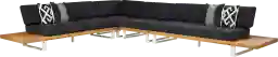 Bring the comfort of indoor furniture outside with the Platform sectional. This impressive piece is made with contemporary style and durability in mind. This sleek, low profile sectional is crafted with solid natural teak and a powder coated aluminum frame. The ultra-durable InsideOut cushions, in a charcoal color, are fade, mold and mildew resistant for long lasting outdoor use. Seating for up to six people is comfortable too, thanks to the breathable nature of the fabric. Four toss pillows add just the right touch. Select cushion colors also available in Sunbrella fabric.