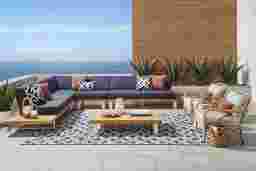 Bring the comfort of indoor furniture outside with the Platform sectional. This impressive piece is made with contemporary style and durability in mind. This sleek, low profile sectional is crafted with solid natural teak and a powder coated aluminum frame. The ultra-durable Sunbrella performance cushions, are fade, mold and mildew resistant for long lasting outdoor use. Seating for up to six people is comfortable too, thanks to the breathable nature of the fabric. Four toss pillows add just the right touch. To clean Sunbrella fabric cushions remove dirt and spray on cleaning solution (water and mild soap), then use a soft bristle brush or sponge. Allow cleaning solution to soak into fabric and rinse thoroughly until soap residue is removed. Air dry. Do not dry clean.