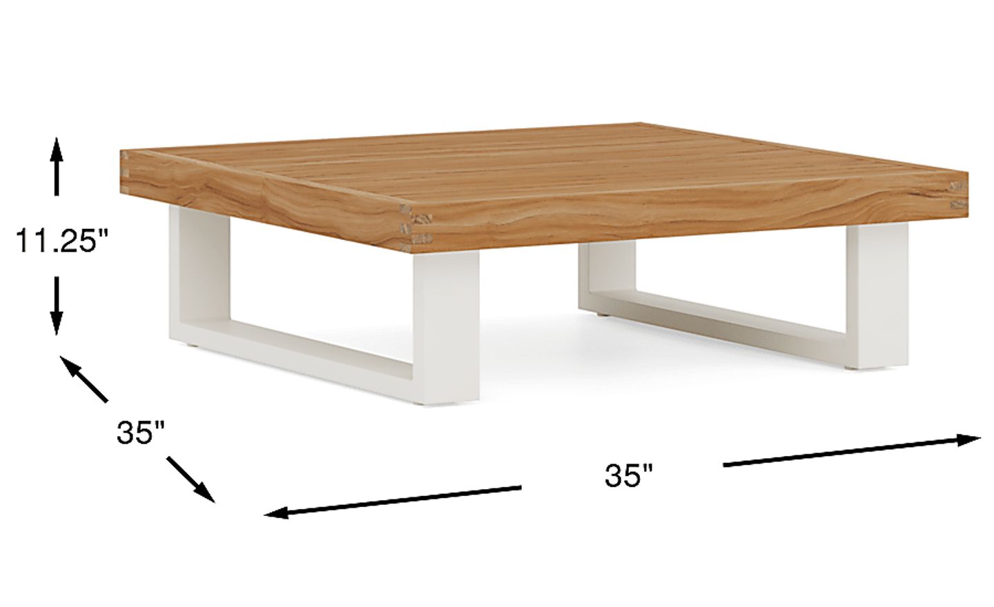 With a 35" x 35" square footprint, this table offers a generous surface area that is perfect for entertaining. Its low height is a strategic choice for smaller spaces, as it provides the function of a coffee table without creating the visual clutter of taller furniture, helping to maintain an open and airy feel on a compact balcony.