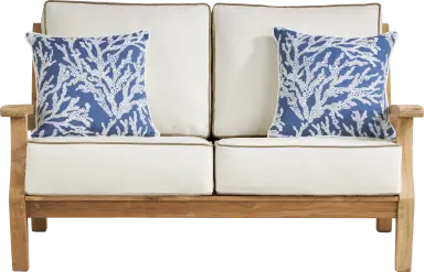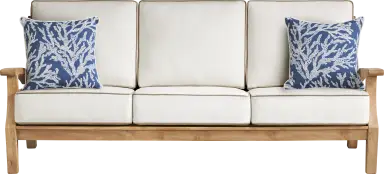 Designed with modern flair to make the most of your patio, the Pleasant Bay sectional combines classic lines with a contemporary silhouette to stunning effect. Crafted from solid teak in a natural finish, this sectional features an open back for a breezy, casual feel. UV-resistant and colorfast Sunbrella cushions in a vapor color feature coordinating welting details and offer ultimate comfort for outdoor seating. Patterned accent pillows provide this sectional with a decorative finishing touch. 100% Sunbrella fabric. To clean Sunbrella fabric cushions remove dirt and spray on cleaning solution (water and mild soap), then use a soft bristle brush or sponge. Allow cleaning solution to soak into fabric and rinse thoroughly until soap residue is removed. Air dry. Do not dry clean.
