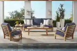 Pleasant Bay Teak 4 Pc Outdoor Seating Set With Indigo Cushions