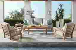 Pleasant Bay Teak 4 Pc Outdoor Seating Set With Pewter Cushions