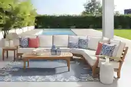 Teak is widely considered the premier choice for luxury outdoor furniture due to its exceptional natural properties. This sectional is crafted from solid teak, a dense hardwood with a high natural oil content that acts as a built-in barrier against moisture, rot, and insect damage. Over time, teak is celebrated for its ability to withstand the elements while maintaining its structural integrity, ensuring this piece remains a centerpiece of your patio for years to come.
