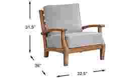 Your new favorite place to relax outside, the Pleasant Bay chair has deep padding for ultimate relaxation. Constructed from beautiful, solid natural teak, the slat back creates a contemporary, breezy silhouette. The pewter cushions in InsideOut fabric are resistant against UV rays and mildew so they retain their beautiful color for a longer period of time. Select cushion colors also available in Sunbrella fabric.