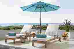 I love my new chaise lounges and teak table to accompany them. The Sunbrella cushions are beautiful and comfortable and I’m hoping they will stay this way for a long time.