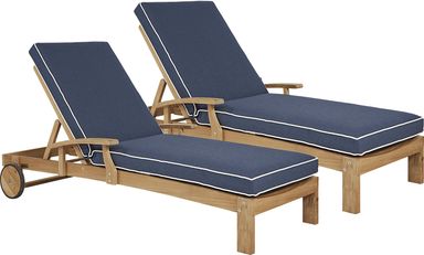 Pleasant Bay Teak Outdoor Chaise With Indigo Cushions, Set Of 2