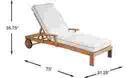 Your new favorite place to relax poolside, the Pleasant Bay chaise lets you stretch out for ultimate relaxation. Constructed from beautiful, solid natural teak, the slat back creates a contemporary and breezy silhouette. The sand-colored Sunbrella cushions are resistant against UV rays and mildew so they retain their beautiful color for a longer period of time. Two wheels on the back make it easy to move around. 100% Sunbrella fabric. To clean Sunbrella fabric cushions remove dirt and spray on cleaning solution (water and mild soap), then use a soft bristle brush or sponge. Allow cleaning solution to soak into fabric and rinse thoroughly until soap residue is removed. Air dry. Do not dry clean.