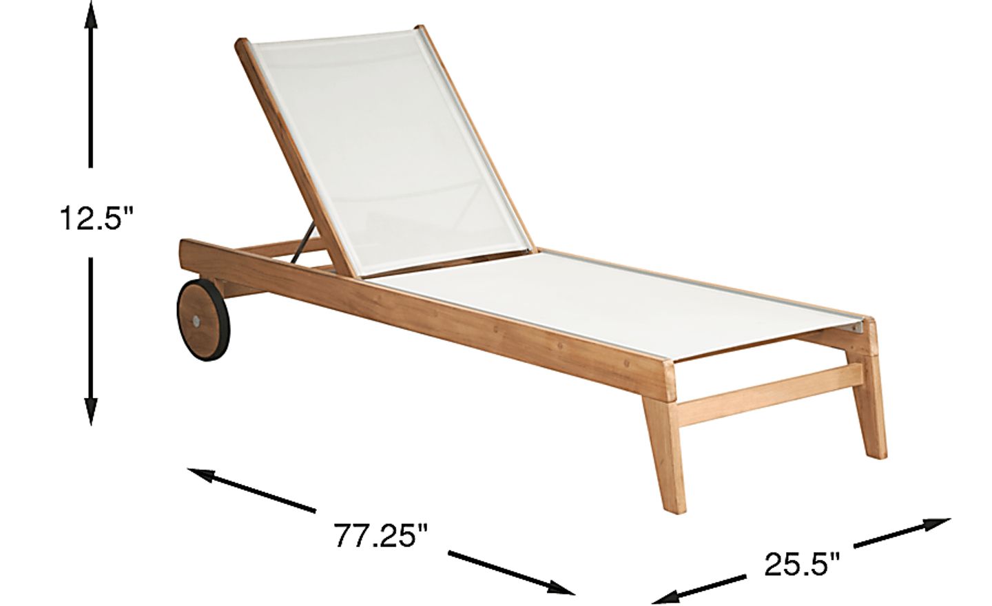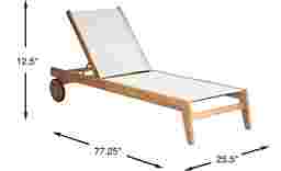 With a laid-back style that invites conversation, this Pleasant Bay chaise allows you to stretch out for easy poolside relaxation. Constructed with a beautiful, solid natural teak frame, the sling back creates a contemporary and breezy silhouette. Crafted with all-weather fabric in a natural color this piece is exceptionally durable without sacrificing on looks. Two wheels on the back make movement a breeze.