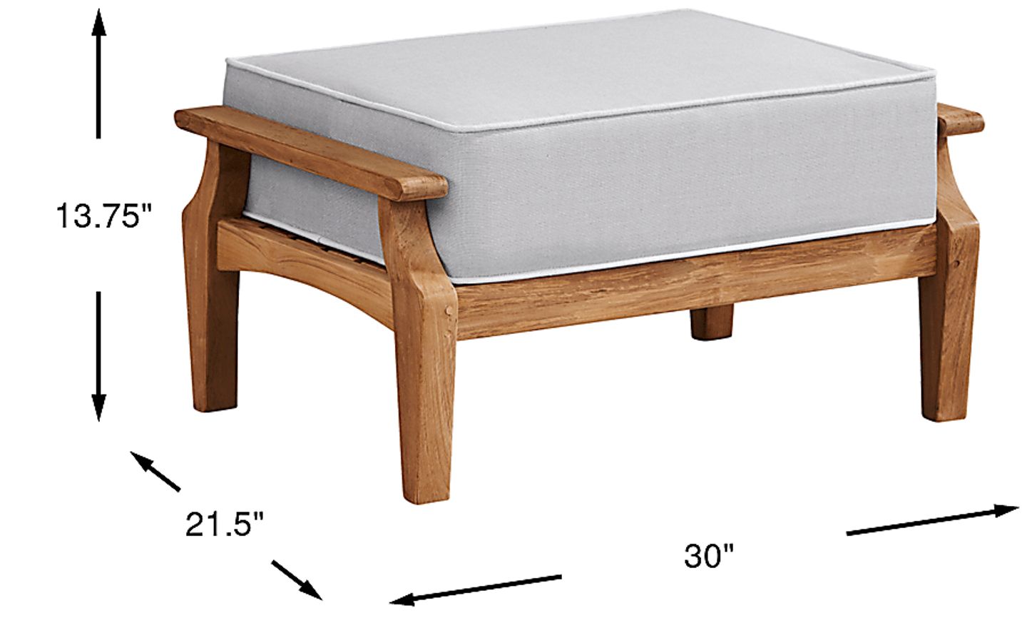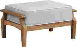 The ideal companion to its matching chair, the Pleasant Bay ottoman extends your comfort with a comfy place to prop your feet. Constructed from beautiful, solid natural teak, a pewter cushion in performance outdoor fabric is padded for comfort and features coordinating trim for a beautiful look. The fabric is resistant to UV rays. Select cushion colors also available in Sunbrella fabric.