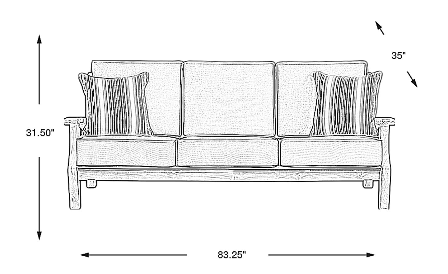 With a width of 83.25 inches, this sofa provides ample seating for three adults while maintaining a relatively compact footprint that suits most medium-sized outdoor spaces. Its contemporary silhouette and track arm design offer a tailored look that provides maximum seating area without unnecessary bulk. The straight-leg design and open-back frame also create a "breezy" visual effect, helping smaller decks or terraces feel more open and less crowded.