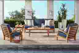 Pleasant Bay Teak 6 Pc Outdoor Seating Set With Denim Cushions