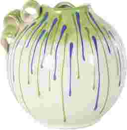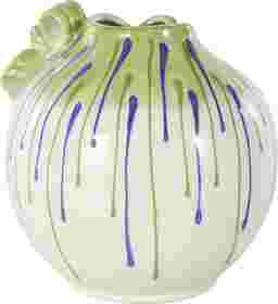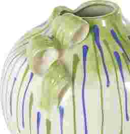 Inspired by sleek elegance and clean lines, this vase utilizes a minimalistic round structure as a canvas for its vibrant green and blue drip design. This technique creates a bold, artistic contrast against the glossy white finish, allowing it to serve as a sophisticated pop of color in monochromatic rooms. Its angular structures and bold hues make it a quintessential choice for contemporary and modern home styles.