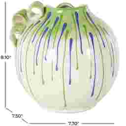 Inspired by sleek elegance and clean lines, a minimalistic design offers effortless luxury with monochromatic tones and bold, angular structures. The Podio Vase is crafted from high-quality ceramic material for an elegant and sturdy appeal. The round home decor vase features a glossy white finish with an eye-catching green and blue drip design. This ceramic vase features a vibrant two-color drip design and includes convenient handles for easy carrying.