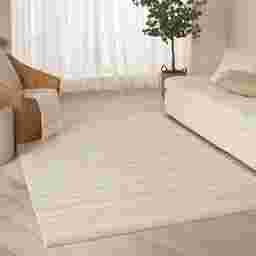 This handmade rug utilizes a strategic blend of wool and polyester to maximize both comfort and longevity. Wool is a premium natural fiber celebrated for its exceptional softness, inherent flame resistance, and "bounce-back" resilience that prevents crushing under heavy furniture. The addition of polyester enhances the rug's overall durability and colorfastness, ensuring the neutral beige tones remain vibrant even in sun-drenched rooms.