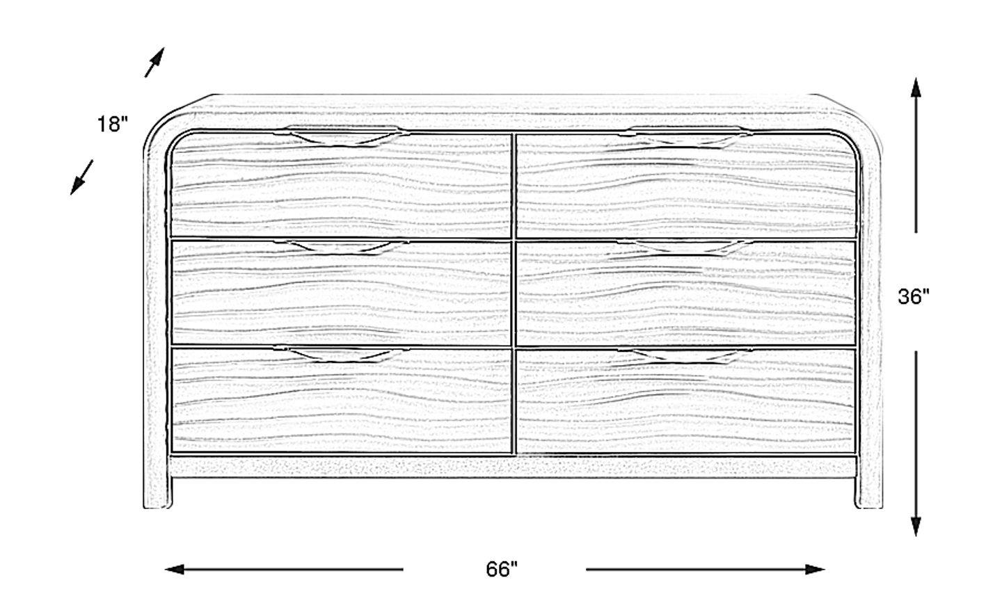 Like a serene oasis where time seems to slow, the Point Loma collection's calming opulence is a truly restorative experience. Crafted with poplar solids and oak veneers in a pearlized white finish, this contemporary dresser boasts soothing wavy textural details and a rounded waterfall frame. Six drawers are adorned with smooth metal pull bars in a luxurious silver for a perfect final touch.