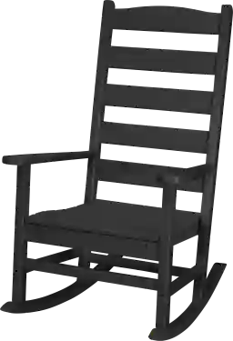 Create the perfect spot to relax with the POLYWOOD Shaker Black Outdoor Rocking Chair. Make a cluster of a few of these traditional all-weather rockers on your porch or deck to create a warm and welcoming look. This comfortable and eco-friendly outdoor rocking chair is constructed of a proprietary blend of recycled plastics, and it will not splinter, crack, chip, peel, or rot. Its fade-resistant color is low maintenance and will not need to be to be painted, stained, or waterproofed. It is designed to withstand nature's elements and to resist stains, corrosive substances, salt spray, and other environmental stresses. Best of all, POLYWOOD furniture is made in the USA. One rocking chair is included. Customer assembly required.