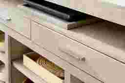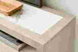 To maintain the refined look of the washed gray finish, we recommend regular dusting with a soft, lint-free cloth. For the sintered stone top, simply wipe the surface with a damp cloth and a drop of mild soap. Our care guidelines suggest avoiding harsh chemical cleaners or abrasive pads, which can compromise the finish and the marble-like luster of the stone over time.