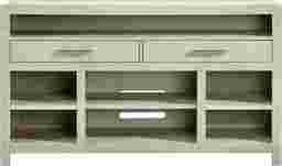 Everyday dinners become effortlessly inviting with the Pompei collection, its cozy charm meets sleek modern edge through refined contrasts and clean lines. Contemporary in style, this server comes in a washed gray finish and makes a striking statement with a sintered stone top in a marble finish. With plenty of display and storage space, this piece includes seven open shelves, two drawers and wire management holes for a clutter free set up. Short straight legs and silver metal pulls add a sleek finishing touch to the piece.
