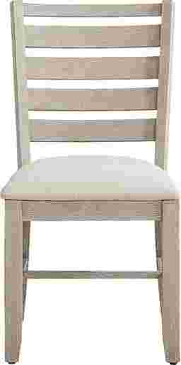 This chair is a versatile "transitional" piece. The washed gray finish and clean lines reflect a contemporary edge, while the ladder-back style offers a nod to traditional charm. It effortlessly complements modern farmhouse, Scandinavian, or soft contemporary decors, especially when paired with other pieces from the washed gray collection.