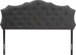 Classic finishes and an elegant curved shape make the Poppleton fabric upholstered headboard the perfect centerpiece in your bedroom or guest room. Constructed of solid rubberwood frame, the Poppleton headboard is upholstered in dark gray polyester fabric that is durable. Featuring curvaceous style lines with button-tufted design, the Poppleton is glamorously trimmed with silver nail heads. The headboard is supported sturdily by solid wood posts and is exceptionally cushioned to provide softness and shape while you sit up. Customer assembly is required.