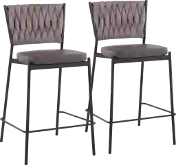 Perfect for your counter area the contemporary design of the Portola Gem counter stool features unique braided fabric and faux leather upholstery. With a comfortable padded seat and backrest the Portola Gem has black metal legs and a footrest for comfort. Customer assembly is required.