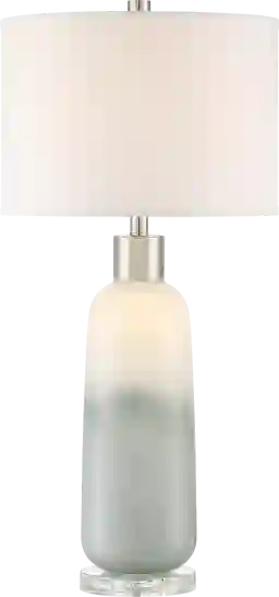 The Portola Point is an art glass table lamp in a light grayish blue glass column that evokes the feelings of sky and sea. The lamp rests on a base of beautiful solid crystal which adds high-end touch to any decor. This lamp has a built-in LED nightlight feature within the base. The 3-way switch allows you to turn on just the top light, nightlight or both ON at the same time. When just the nightlight is turned on in the dark, the ambient lighting makes the lamp look like a piece of artwork. Perfect for a living room or bedroom space. Partial assembly may be required.