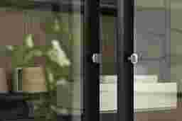 What is the recommended way to clean the glass doors and black finish?