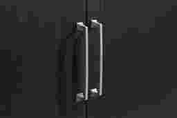 To maintain the clarity of the glass panels and the luster of the oak veneer, we recommend using a soft, lint-free cloth. For the glass, apply a small amount of glass cleaner to the cloth rather than spraying the doors directly to avoid moisture seeping into the wood frame. For the black-finished surfaces, a dry or slightly damp microfiber cloth is best; avoid using harsh chemical cleaners or wax polishes, which can build up over time and dull the finish.