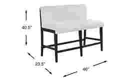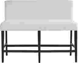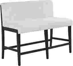 Balanced structure and soft detailing in the Portsmouth counter height bench make mealtime a happy, cozy affair. Oak veneers in a black finish provide this piece with a visual and textural contrast against the seat's soft beige upholstery. The unique waterfall-style cushions hug the top and bottom edges of the seat frames, peeking through vertical slat backs for a final touch of modern farmhouse beauty at all angles.