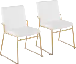 Enjoy the modern elegance of the Powhatan I dining chair. With its contemporary and glamorous style, the Powhatan I dining chair offers both comfort and luxury for your dining experience. Dressed with gold steel and faux leather, this chair will be the main attraction in any dining room, break room, or kitchen. Customer assembly is required.