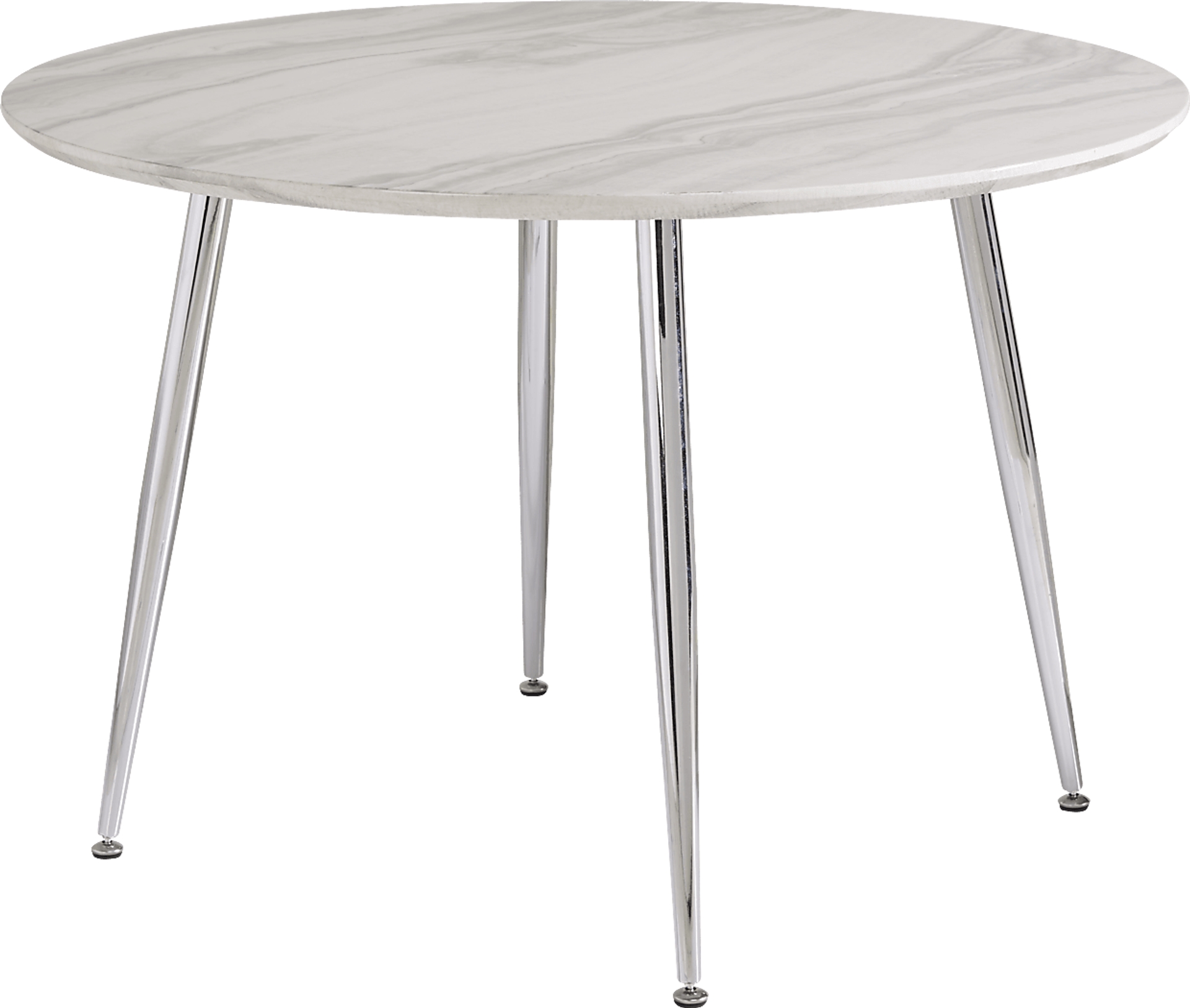 Absolutely. The "visual lightness" of the tapered chrome-finished legs combined with the round silhouette makes this piece an excellent solution for compact living. Unlike heavy pedestal bases, the thin steel legs preserve open sightlines, helping a small dining nook or apartment floor plan feel more spacious and airy.