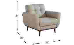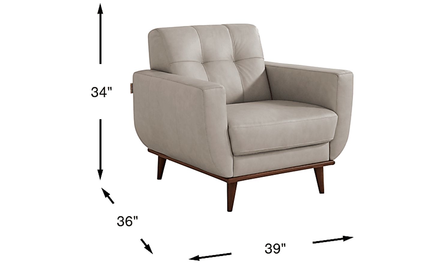 Complete your living room setup with the comfortable Pressly Place chair. Contemporary in style, this beautiful piece is upholstered in premium top grain leather where the body touches and comes in a versatile light gray color. Adding to the appeal are tufted backs and a brown-finished wood base. Top grain leather where the body touches with vinyl sides and backs.