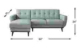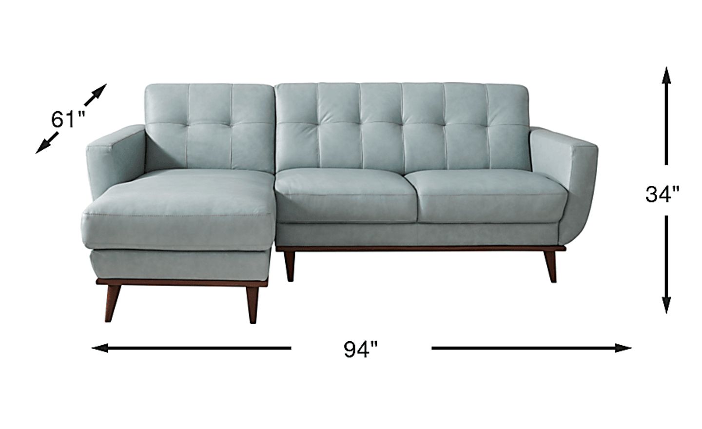 Create a comfortable, inviting living room space with the Pressly Place sectional. Contemporary in style, this beautiful piece is upholstered in premium top grain leather where the body touches and comes in a refreshing sky blue color. Adding to the European appeal are tufted backs and a brown-finished wood base. Upholstery: Top grain leather where the body touches with vinyl sides and backs.