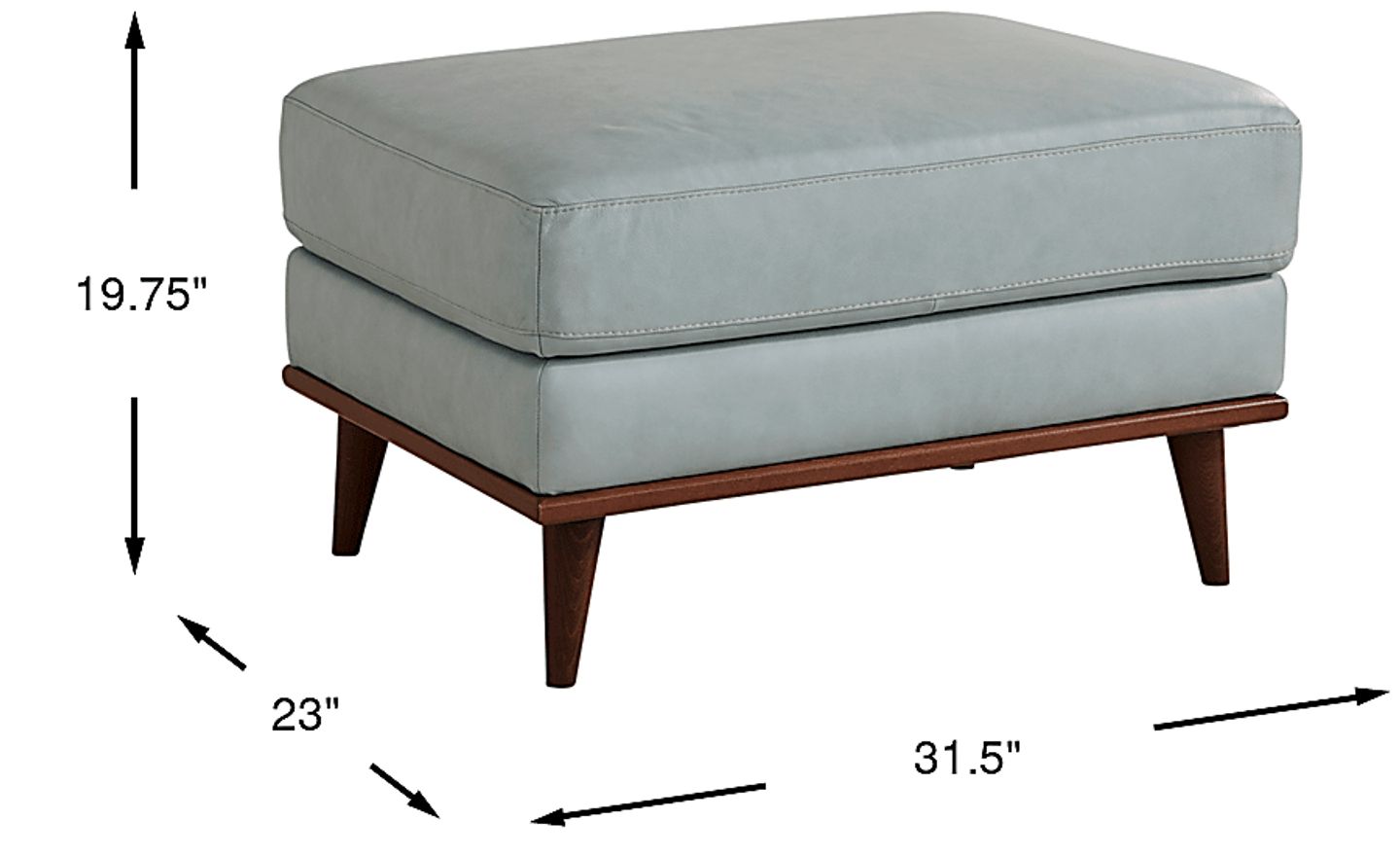 Whether used as a footrest while relaxing or an extra seat while entertaining, the Pressly Place ottoman is the perfect choice for your home. Upholstered in premium top grain leather where the body touches, this stylish piece comes in a refreshing sky blue color. Upholstery: Top grain leather where the body touches.
